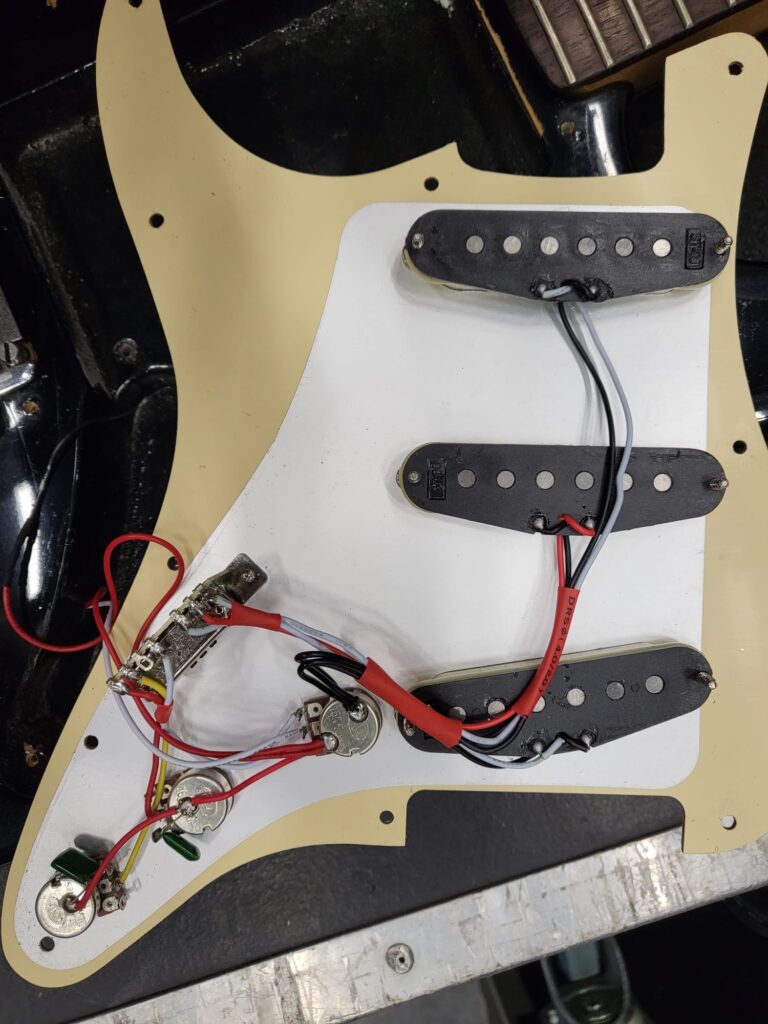 professioneel inbouwen van elementen zowel acoustische pickups als elektrische pickups, reparatie/vervanging van elektronica en potmeters.